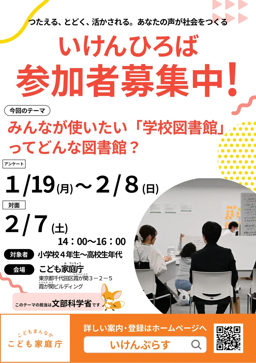 日にち:2/7(土)14:00~16:00 場所:こども家庭庁(東京都千代田区霞が関3-2-5 霞が関ビルディング) |